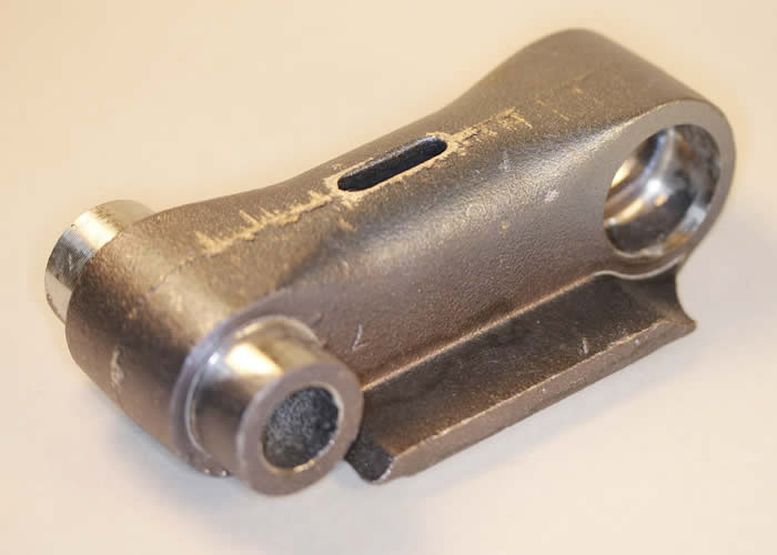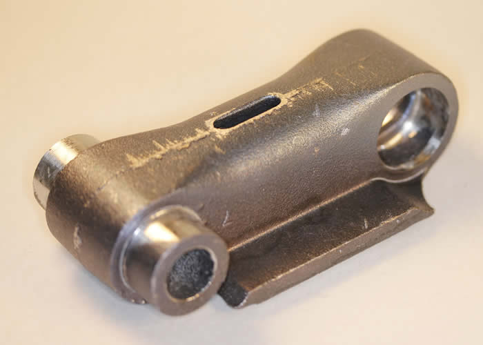 When subjected to tensile testing, the ML-448 link fractures at twenty-nine thousand p.s.i. at ambient temperature. The failure mode is the fracture and tearing of the lugs.